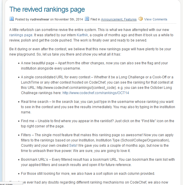 It has been some great work by Codechef Ranking page! It is them who inspired us to build this long awaited feature on...
