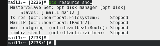 ocf::btactic:zimbradon t come bundled with standard pacemaker installation, you need to download from Github or Mirror and place at/usr/lib/ocf/resource.d/btactic(create folder wherever needed). - mail_outgoing (or whatever you name) will have IP address equivalent to IP you wish to have for outgoing emails from. Keep it according to the DNS entries and/or generally equal to the floating IP.