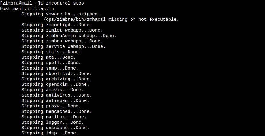 | zimbra_start | ocf::btactic:zimbra | Starting Zimbra services | pcs resource create zimbra_start ocf:btactic:zimbra op monitor interval=120s |